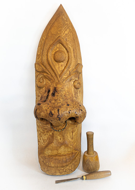 Mask Material Sycamore Method Hand carved Display Wall hung | Indoors Dimensions 84 x 28 x 18 cm Weight 4 kg Previous Next Prev Next