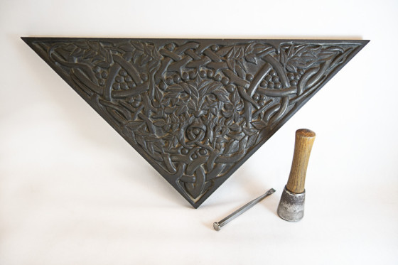 Rowan Green Man Material Welsh slate Method Hand carved Display Wall hung / built in Dimensions 30 x 64 x 2.5 cm Previous Next Prev Next