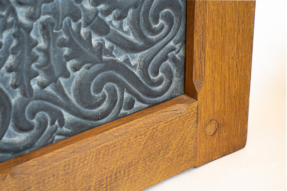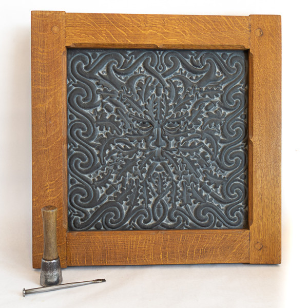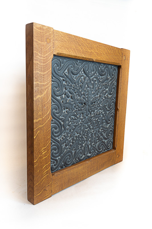 Oak Green Man Material Welsh slate with oak frame Method Hand carved Display Wall hung / built in Dimensions 62 x 61 x 4.5 cm Weight 18.2 kg Previous Next Prev Next